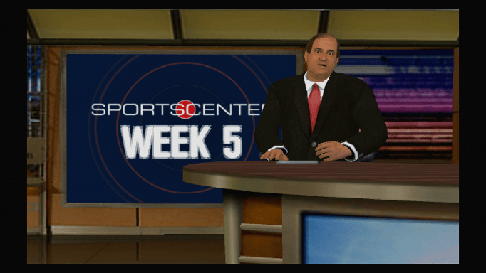 ESPN NFL 2K5 still offers the best presentation seen in an NFL-licensed video game. Visual Concepts expertly reproduced the 2004 ESPN experience, from the stat overlays and replay angles to the SportsCenter set and network personalities. SportsCenter in 2004 was must-see TV for sports fans, and ESPN NFL 2K5 brings that feeling back nicely.