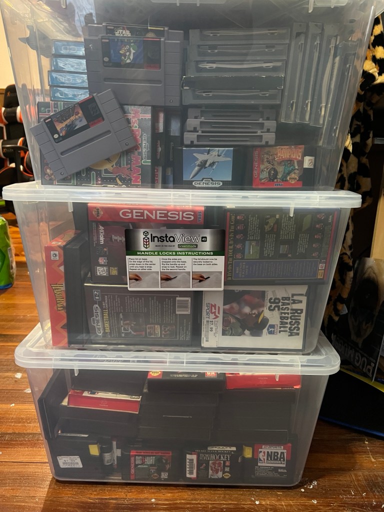 My decision to cull about a third of my overall collection helped with this problem, as it created space that I was lacking. I started paring down my collection late in the summer of 2023, starting with NES games and some SNES games that I brought to a local independent video game store that had actually sold me a lot of them since 2011– so it was a homecoming of sorts. After about three trips, though, at a plastic bin apiece, I hit the pause button because I didn’t want to overload the store.