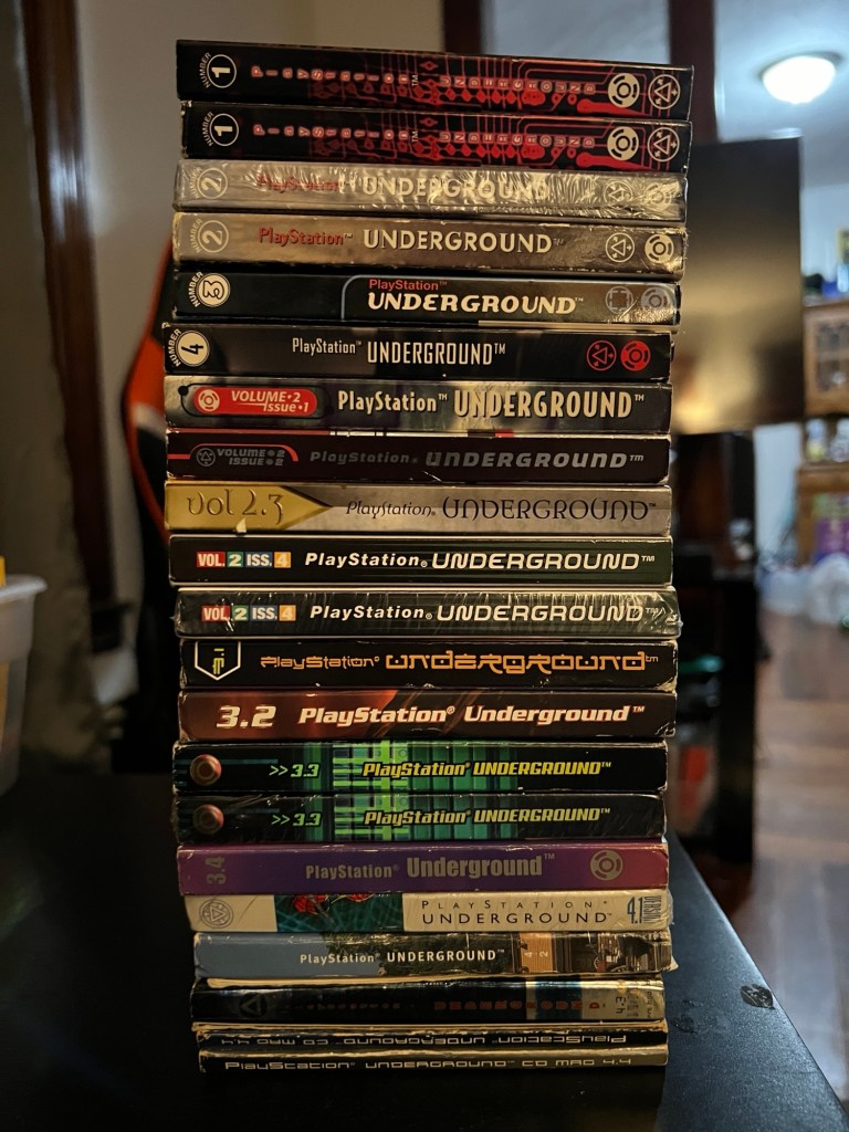 Finally, I have the complete set of PlayStation Underground CD Magazine issues. Some of these are even sealed– though they will get opened down the line. These are basically demo disc sets that were released every three months that came supercharged with extra content. Full code archives (because cheat codes and passwords were still things back then), demos of import games, interviews with developers and producers, behind the scenes video features, memory card files for certain games to unlock content, Easter Eggs to be found that unlocked certain demos or features, and more exist in each issue. Some of the stuff is a bit… “cringey” by today’s standards, but for those of us who were around and playing games back then, we get the context.