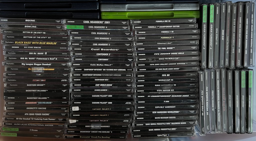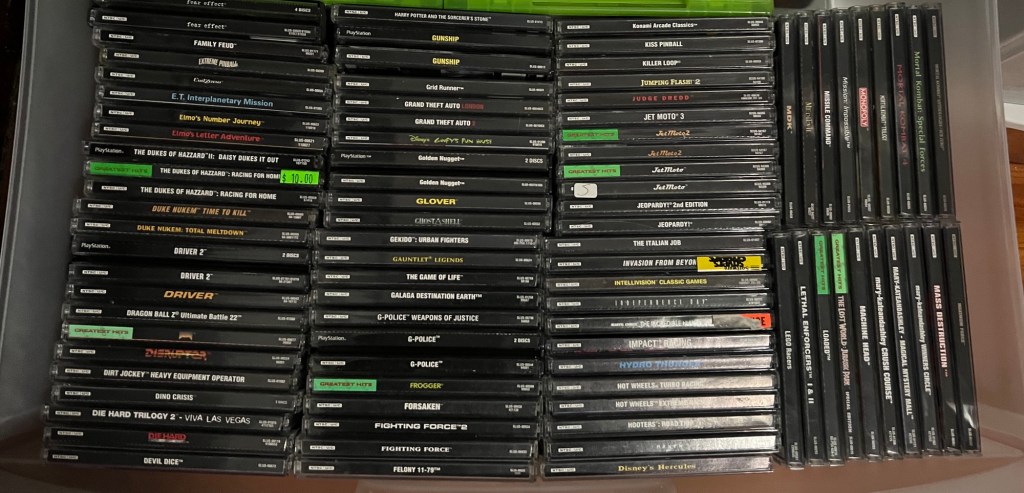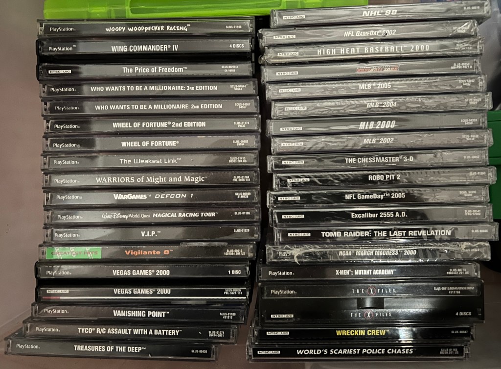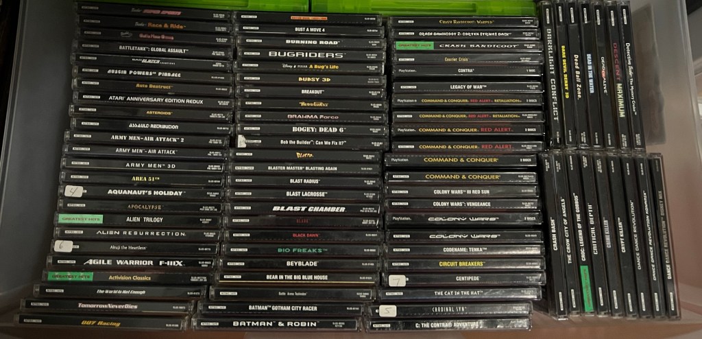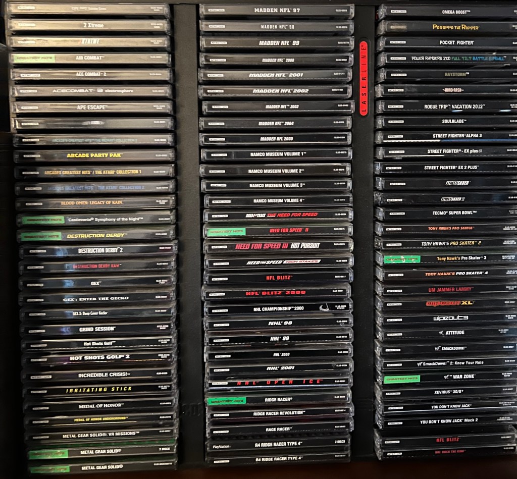 It feels great to have this console’s library fully organized and ready to enjoy. It was certainly a lot of work– and less gaming time during my vacation– but it’s ultimately worthwhile to have it done. The PlayStation joins my Gamecube, original Xbox, and Wii games as being fully reorganized. That leaves my Nintendo 64 and PlayStation 2 libraries to fix. N64 will be easy, as it’s less than 100 games… but PS2? That’s almost 1,000 games! It’ll be a big challenge.
