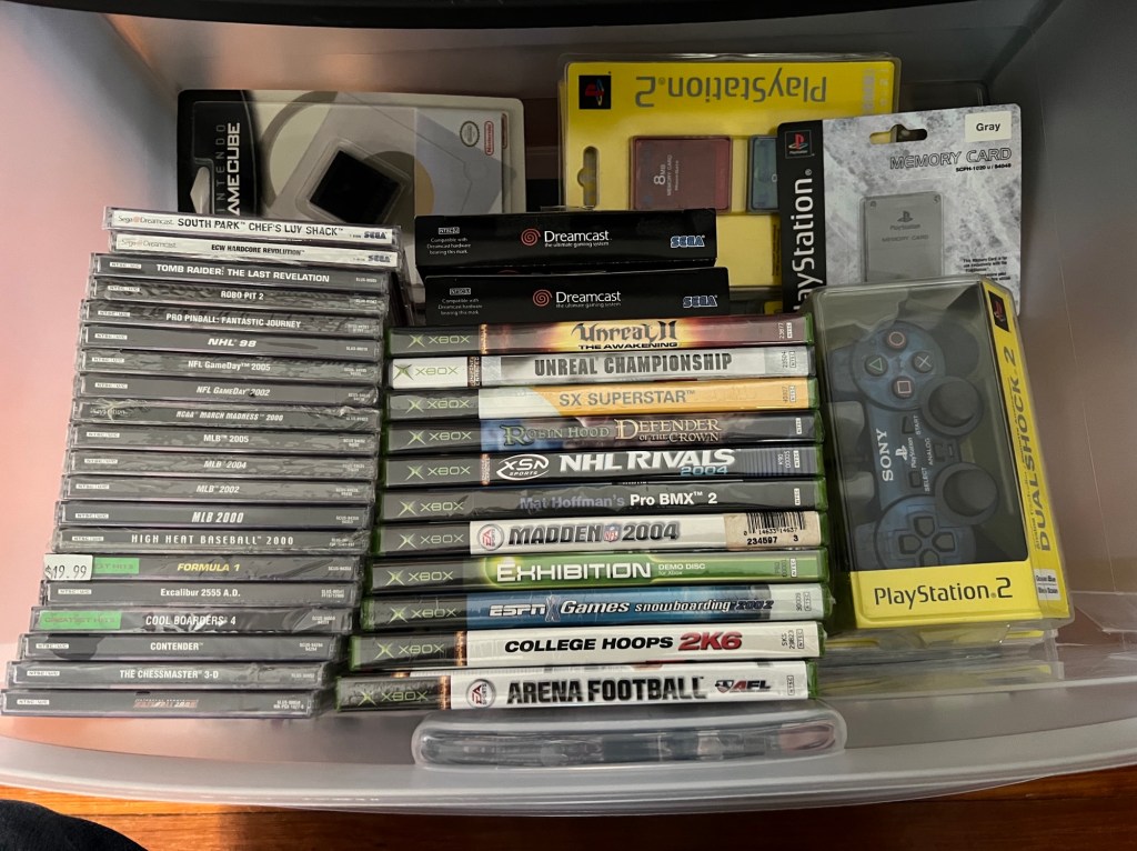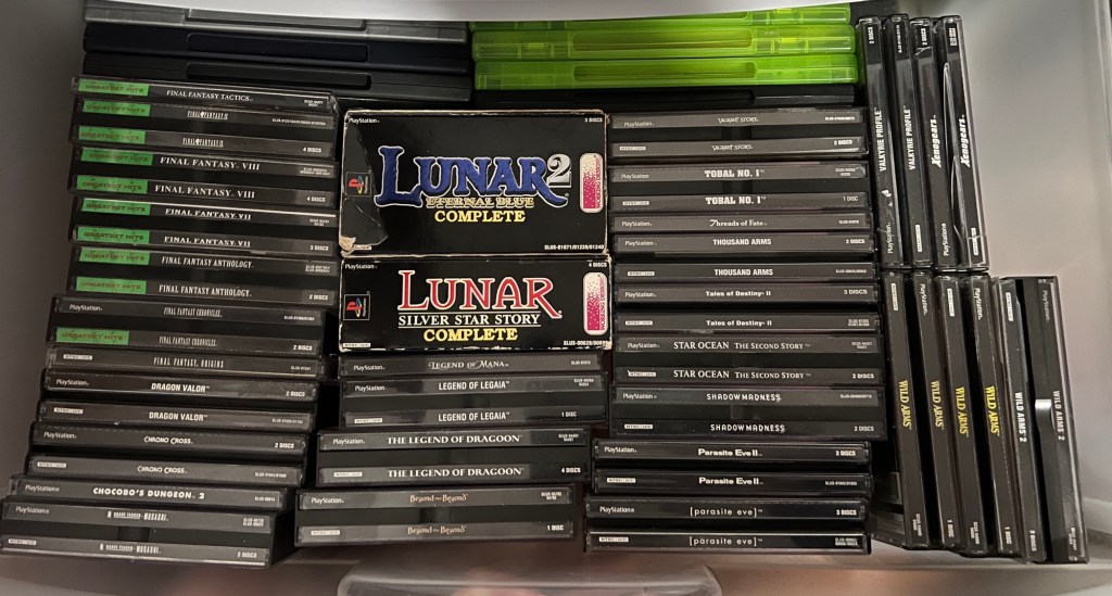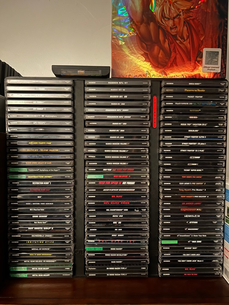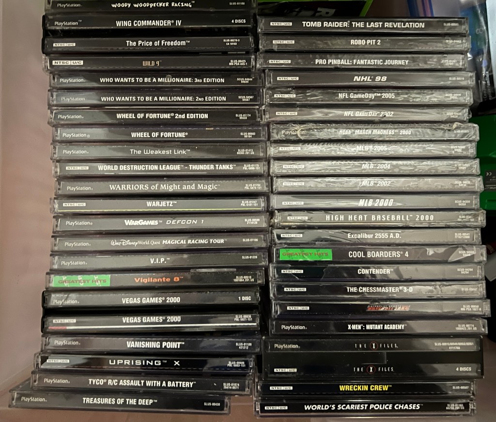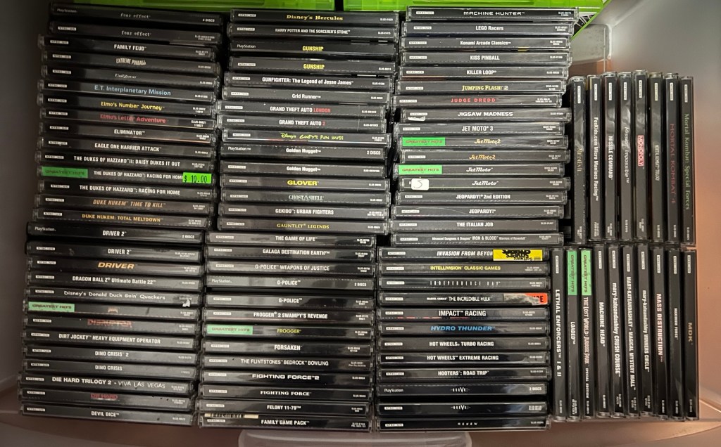 I’ve focused a lot of my time and budget on adding original PlayStation and original Xbox games to my library. The original PlayStation collection is over 930 games large now, including more than 70 “long box” games. When I sold off my 8-bit and 16-bit games, I used some of the funds raised to add a few pricier games. Tales of Destiny II, Dino Crisis 2, and Mega Man Legends 2 are now complete in case. Xbox curiosities like Fallout: Brotherhood of Steel and a Raiden variant of the Mortal Kombat: Deception Kollector’s Edition are also now mine.