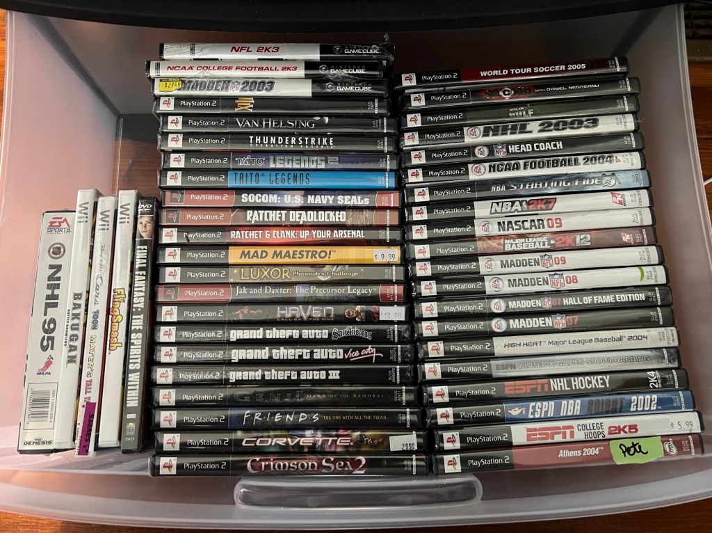 I’ve also gotten around to filing all of my recent original PlayStation game additions into my plastic drawer units, as well as organizing and housing all of my factory-sealed games and accessories, which I’ll eventually get around to opening some day.